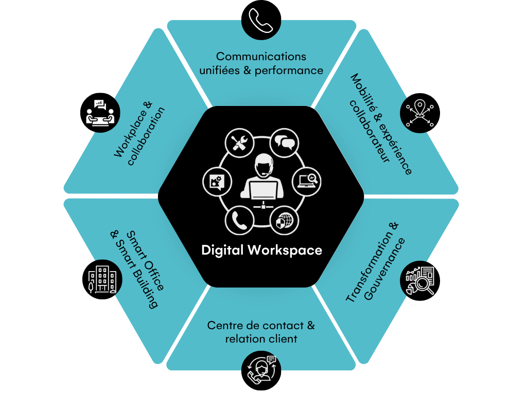 Le Digital Workspace (ou espace de travail numérique) est un espace de travail numérique qui permet aux collaborateurs d’accéder facilement à toutes leurs applications, données et outils de collaboration depuis n’importe quel appareil et n’importe où, de manière sécurisée.